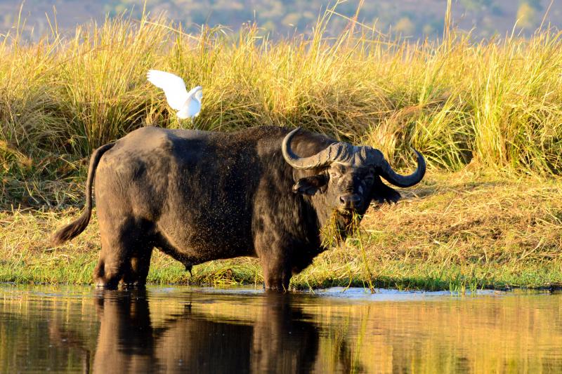 | Und noch weiter geht es durch den Bwabwata Nationalpark hinein in die Zambezi Region bis zum gleichnamigen Fluss, der die Grenze zu Zambia und Zimbabwe bildet. Gerade mal 30 km breit ist hier der schmale Landstreifen zwischen den Grenzen zu Angola und Botswana, der Namibia Veteranen noch als Caprivi-Streifen vertraut ist. Schließlich ging es dem Reichskanzler Leo von Caprivi, dem Nachfolger Bismarcks, 1980 lediglich um den Zugang zum Zambezi Fluss für das damalige deutsche Kolonialgebiet. Die Achtung-Elefanten Schilder am Straßenrand wurden übrigens nicht für Touristen aufgestellt, sondern sind ernst gemeint! Bei unserer nächsten Lodge direkt am Ufer des Zambezi Fluss ist Wildnis pur angesagt. Vor Beginn der Regenfälle in den Sommermonaten, wenn das Land trocken ist, versammeln sich Elefanten, große Büffelherden und viele andere Tierarten am Ufer des Flusses. 24/7 Terra-X live und unzensiert. Die optionale Bootsfahrt am Nachmittag lassen da jedem Tierliebhaber und Ornithologen das Herz höher schlagen.