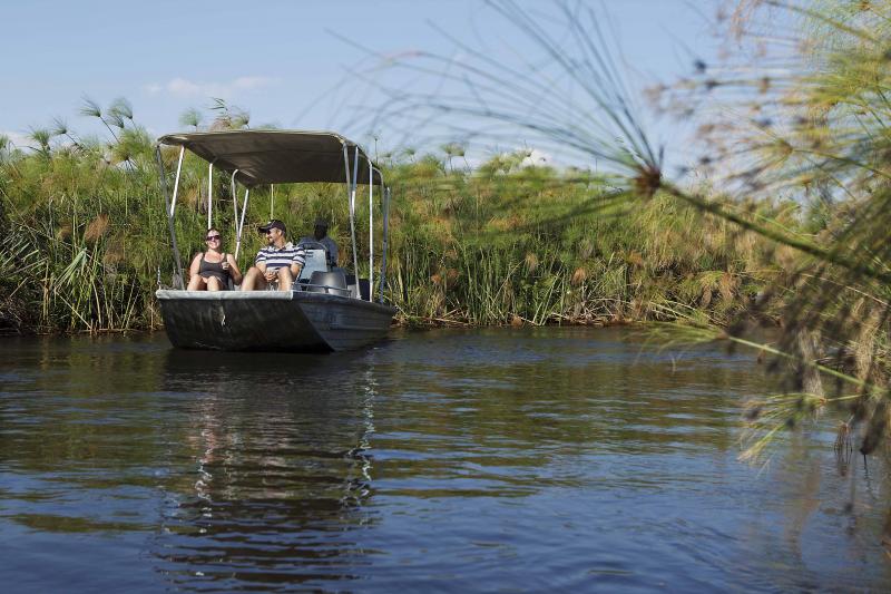 | Pirschfahrten im offenen Geländewagen, per Boot oder mit dem Kanu stehen heute am Morgen und im Lauf des Nachmittags am Programm. Über die Mittagszeit können Sie den Komfort Ihres schönen Camps genießen und am Pool relaxen. | |