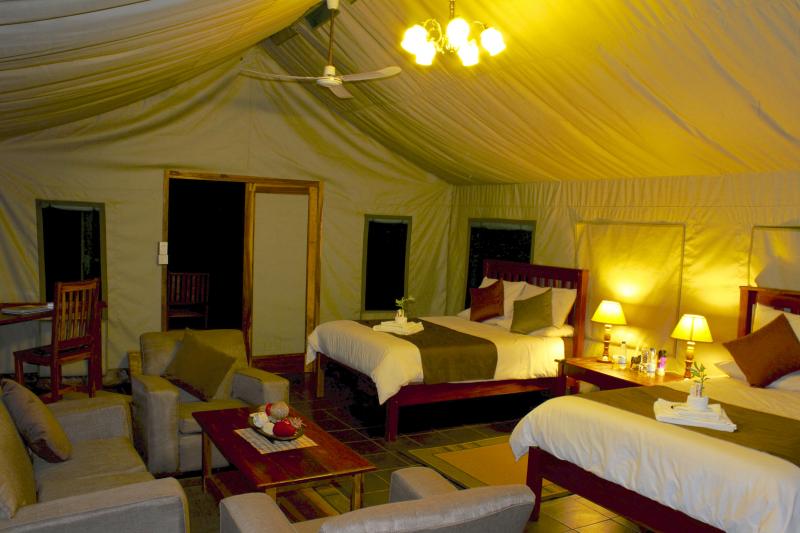 LAGEDie Bomani Tented Lodge befindet sich auf einem exklusiven Privatkonzessionsgebiet, angrenzend an den südöstlichen Teil des Hwange Nationalparks. Die Lodge ist etwa 4 Stunden von Victoria Falls oder Bulawayo entfernt, bequem erreichbar per Straßentransfer, Kleinflugzeug oder dem einzigartigen „Elephant Express“. | HOTELDie Bomani Tented Lodge bietet eine einzigartige Mischung aus Komfort und Abenteuer. Das strohgedeckte Hauptgebäude umfasst einen offenen Essbereich, eine Bar und Lounge sowie ein großzügiges Aussichtsdeck, von dem aus Sie die weitläufige Schwemmebene überblicken können. Die Lodge bietet abwechslungsreiche Aktivitäten wie Pirschfahrten im offenen Geländewagen, nächtliche Safaris im privaten Wildgebiet und Fußsafaris. Ein besonderes Highlight ist die ganztägige Pirsch- und Kontrollfahrt zu den Wasserstellen. Neben dem Engagement für lokale Projekte, die besichtigt werden können, lädt ein kleiner Pool zur Erfrischung ein. Ideal für Naturfreunde und Kulturliebhaber gleichermaßen. | ZIMMERDie Bomani Tented Lodge bietet 11 großzügige Hauszelte und 1 Familien-Chalet. Jedes Zelt misst mindestens 45 m² und ist entweder auf erhöhten Teakholz-Plattformen mit Blick über die offene Savanne oder ebenerdig mit Aussicht auf die Wasserstelle erbaut. Die Zelte sind komfortabel ausgestattet, mit Badezimmern, die Dusche und WC umfassen, sowie Ventilatoren und privaten Terrassen oder Decks für entspannte Stunden im Freien. Das Familien-Chalet bietet zusätzlichen Platz und Privatsphäre für größere Gruppen. |