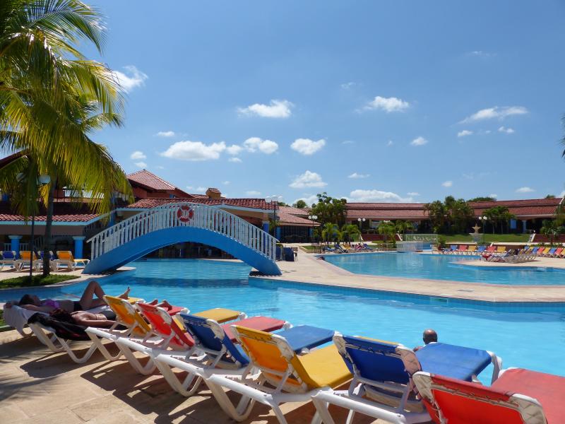 LAGEDas Hotel befindet sich am Strand von Guardalavaca, der als einer der schönsten Kubas gilt. Das Zentrum der kleinen Ortschaft von Guardalavaca ist in nur 500 Meter Entfernung zu finden. Der Internationale Flughafen von Holguin ist ca. 80 km und der Internationale Flughafen von Santiago de Cuba ca. 200 km entfernt. | HOTELDas All-Inclusive Resort liegt im Osten Kubas an einem der schönsten Strände des Landesein Ort, den bereits Christopher Kolumbus als einen der faszinierendsten bezeichnete. Die großzügige Anlage bietet 2 Pools, einen Whirlpool, eine Sauna, ein Fitnesscenter, einen Schönheitssalon sowie eine Diskothek. Für kulinarische Genüsse stehen 2 Buffet- und 5 á-la-carte-Restaurants sowie verschiedene Bars zur Verfügung.Ein dynamisches Hotelanimationsteam sorgt für ein abwechslungsreiches Unterhaltungsprogramm. Am Strand können nicht motorisierte Wassersportgeräte kostenlos ausgeliehen werden. Für die kleinen Gäste stehen ein Spielzimmer, ein Kinderbecken und ein Miniclub (4 - 12 Jahre) bereit, damit auch sie ihre Zeit in vollen Zügen genießen können. Erleben Sie Kuba in seiner ganzen Schönheit an diesem exquisiten Reiseziel. | ZIMMERDie 437 Zimmer dieser Anlage sind zweckmäßig und in lebendigen Farbtönen gestaltet. Jedes Zimmer verfügt über ein Badezimmer, einen Föhn, Klimaanlage, Fernseher, Safe, Kaffeemaschine und Minibar, um den Gästen einen komfortablen und angenehmen Aufenthalt zu bieten. |