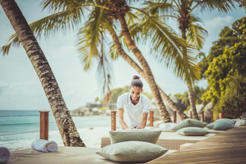 LAGEDas Carana Beach Hotel liegt idyllisch an der Nordküste von Mahé, der Hauptinsel der Seychellen. Es ist etwa 20 Kilometer vom internationalen Flughafen Seychelles International Airport entfernt. Die Fahrtzeit beträgt je nach Verkehr ungefähr 25-30 Minuten. | HOTELDas Resort befindet sich auf einer leichten Anhöhe mit einem traumhaften Blick auf den Ozean und einer Art natürlichen Bucht, die dafür sorgt, dass die Gäste hier eine ungeahnte Ruhe und einen ganz besonderen Frieden genießen können. Das Gefühl von "Abgeschiedenheit, trotz Luxus und Komfort" scheint hier groß geschrieben zu werden. Der umliegende Garten ist wunderbar gepflegt, genauso der gesamte Außenbereich inklusive Pool-Area, Terrasse und Wegen, die von den einzelnen Chalets zum Haupthaus beziehungsweise zur Rezeption oder zum Strandzugang führen. Hochwertige Sitzmöglichkeiten und Sonnenbetten befinden sich überall da, wo man ohnehin gerne eine kurze Auszeit nehmen möchte - vor allem aber rund um den großen Pool und die Terrassen. Genießen Sie außerdem ein Höchstmaß an Entspannung im hauseigenen Spa.Zu den Einrichtungen der Unterkunft zählen eine Rezeption und ein Souvenirladen. Ein Wäscheservice und Zimmerservice werden ebenfalls angeboten. Zu den weiteren Annehmlichkeiten des Hotels gehören ein eigener Strandbereich und eine Autovermietung. Victoria liegt 8,4 km vom Carana Beach entfernt, und von La Digue trennen Sie 48 km. Zum nächstgelegenen internationalen Flughafen Seychellen gelangen Sie von der Unterkunft aus nach 13 km. | ZIMMERDie 40 Chalets bieten einen herrlichen Blick auf den malerischen Sandstrand. Jedes besticht durch modernen Komfort und ein elegantes, kreolisches Ambiente. Die Ocean View Chalets sind ausgestattet mit einer Lounge, einem Badezimmer mit Dusche, einem Föhn, Sat-TV, Klimaanlage, Deckenventilator, Minibar, Nespresso-Maschine, Safe und einer Terrasse mit Strandliege. Die Ocean View Pool Chalets verwöhnen bei gleicher Ausstattung mit einer größeren Terrasse und einem privaten Plunge Pool. |
