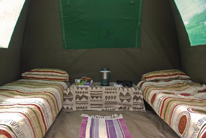 o Camping: Unterbringung in 3x3 m Zelten mit eigener, angeschlossener Dusche & Toilette; Feldbetten,