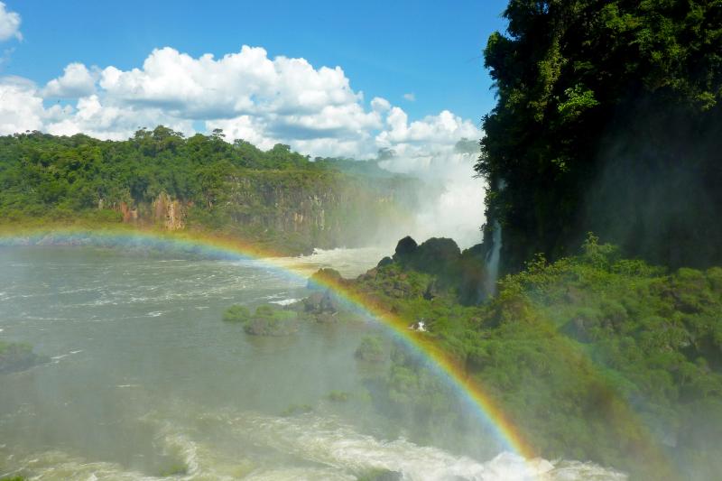 | Nach dem Frühstück besuchen Sie die argentinische Seite der Wasserfälle. Die Fahrt geht über die Tancredo Neves Brücke über den Iguazu Fluss, der die natürliche Grenze zwischen Brasilien und Argentinien bildet (kurze Zollformalitäten an der Grenze). Während Sie auf der brasilianischen Seite hauptsächlich das Panorama der Fälle genießen können, wandern Sie auf der argentinischen Seite auf dem unteren und oberen Rundweg ganz nah zwischen den einzelnen Wasserfällen. Mit dem Ecological Jungle-Zug geht es bis zur Teufelsschlucht-Station, von wo ein kurzer Spaziergang zum spektakulären Aussichtspunkt der Teufelsschlucht führt. Rückfahrt ins Hotel.