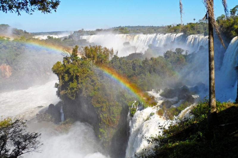 Diese Wasserfälle zählen zu den beeindruckendsten Naturschätzen Südamerikas aufgrund ihrer beeindruckenden Größe und ihrer unberührten Lage im tropischen Urwald am Dreiländereck von Brasilien, Argentinien und Paraguay. Auf der brasilianischen Seite erwartet Sie ein wahrhaft spektakulärer Panoramablick. Von einer Aussichtsplattform nahe der Teufelsschlucht aus können Sie die gewaltigen Wasserfälle aus nächster Nähe bestaunen. Ein schmaler Steg führt Sie zur unteren Steilstufe der Fälle, wo Sie von tosendem Wasser, Nebel und spritzender Gischt umgeben sind. Der grüne Dschungel, entwurzelte Bäume und ein halbkreisförmiger Regenbogen machen die Szenerie komplett.