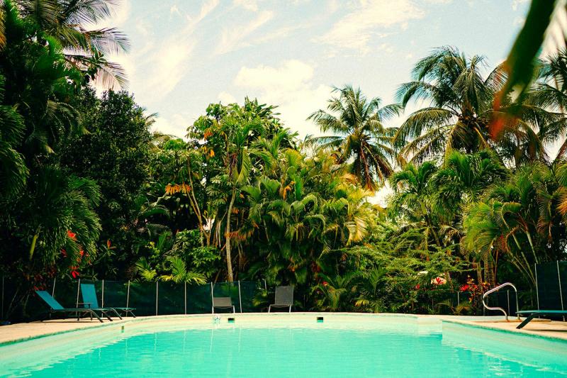 LAGEDas Hotel befindet sich in der Stadt Deshaies auf Guadeloupe, 40 km vom Flughafen entfernt. Die Lage und das Design wurden gewählt, um den Gästen Ruhe, Gelassenheit und Komfort zu bieten, damit sie sich während ihres Aufenthalts vollkommen entspannen können.Nur 300 m vom Hotel entfernt erwartet Sie der wilde Strand "Grande Anse", der als einer der schönsten Strände von Guadeloupe gilt (2,5 km feiner Sand und Kokospalmen). Vor der Küste liegen einige der schönsten Meeresböden von Guadeloupe, darunter das "Cousteau Reservat", die "Grand Cul de Sac Marin" und das "Ilet Caret". In unmittelbarer Nähe finden Naturbegeisterte eine Vielzahl von Wanderwegen (Regenwald, Wasserfälle, Soufrière-Vulkan usw.). | HOTELDas bezaubernde Hotel Caraïb'Bay befindet sich in Basse Terre und erstreckt sich über einen außergewöhnlichen tropischen Park von 11.000 m², der mit über 100 Baum- und Blumenarten ein Paradies für Schmetterlinge und Kolibris ist. Hier verbindet sich Komfort mit einer herzlichen und behaglichen Atmosphäreein Ort, an dem die Zeit stillzustehen scheint und Sie die Ruhe und Gelassenheit in vollen Zügen genießen können.Ein Highlight ist der 112 m² große Pool (16 m x 7 m) mit einer großzügigen Sonnenterrasse, die zum Entspannen und Erfrischen einlädt. Die Rezeption aus tropischem Holz begrüßt Sie herzlich und lädt zum Verweilen ein, während Sie in der Poolbar köstliche Cocktails kosten können. Eine überdachte Holzterrasse verwöhnt Sie mit einem gemütlichen Frühstück und für eine extra Portion Entspannung steht eine kleine "Hütte" bereit, in der Sie eine wohltuende tropische Massage genießen können. | ZIMMERDuplex-ApartmentsInmitten eines außergewöhnlichen tropischen Parks befinden sich 12 Duplex-Apartments, jeweils 50 m² groß und harmonisch in die Natur integriert. Jedes Apartment bietet Platz für 4 bis 5 Personen. TI KAZ BWA Diese charmante Villa, komplett aus Holz gebaut, bietet Platz für 2 Personen und wurde von einem einheimischen Bildhauer namens "Babiche" dekoriert. Sie befindet sich inmitten des Parks, umgeben von üppiger Natur, wo Vögel zwischen Brotfrucht- und Kokosnussbäumen umherfliegen. |
