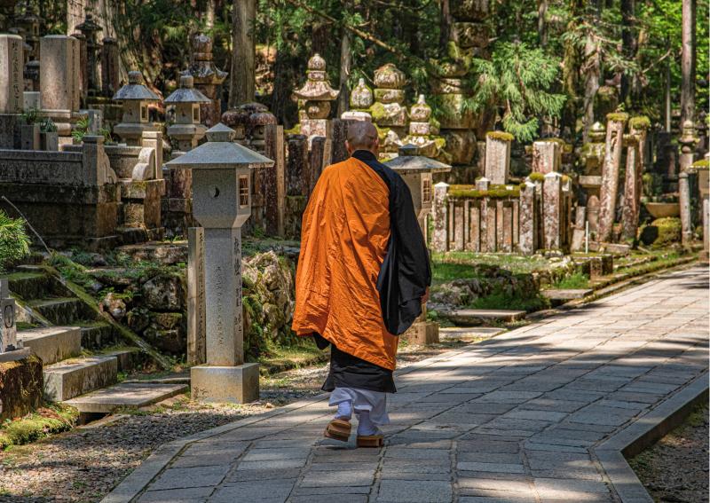 Sie spazieren zur Gedenkstätte des Gründers, umgeben von uralten Gräbern und majestätischen Zypressen. Hier erwartet Sie der älteste und größte Friedhof Japans – ein Ort von unglaublicher Stille und tiefem Gedenken, der faszinierenderweise auch Grabstätten großer japanischer Unternehmen beherbergt.