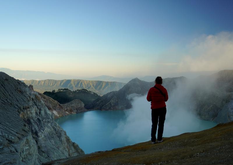 Auf einem schattigen Pfad werden Sie mit spektakulären Landschaftsbildern belohnt. Am Kraterrand auf 2.883 Metern Höhe erwartet Sie ein bezauberndes, einzigartiges Farbenspiel: der tiefblaue Kratersee kontrastiert mit den rauchenden, grellgelben Schwefelsteinen. Ein zutiefst beeindruckender Anblick ist die Beobachtung der Minenarbeiter, die unter extremen Bedingungen bis zu 80 kg schwere Schwefelbrocken in Bambuskörben auf den Bergpfaden transportieren. (Aus Sicherheitsgründen ist das Herabsteigen zum Seeufer aufgrund stark giftiger Dämpfe nicht gestattet.)
