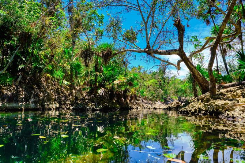 Auf dem Weg dorthin machen Sie eine Pause zum Mittagessen und besuchen später die Casa del Zunzún, den Hof des Naturliebhabers Herrn Bernabé. Der Innenhof dient als Rückzugsgebiet und Zugkorridor für verschiedene Vogelarten, darunter der Zunzuncito, der kleinste Vogel der Welt. Nach einer kurzen Weiterfahrt erreichen Sie die Cueva de los Peces, bekannt als der tiefste und schönste Cenote Kubas. Diese Lagune ist mit einem umfangreichen Unterwasserhöhlensystem verbunden, das sich über mehr als 30 km von Playa Larga bis nach Caleta El Toro erstreckt.