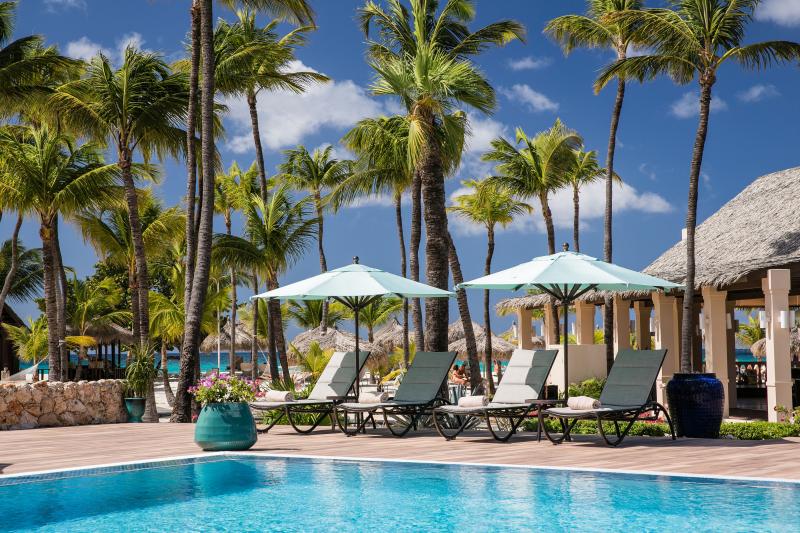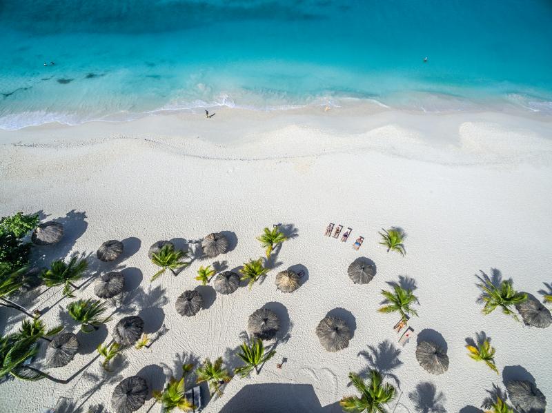- 55 schattige Cabanas direkt an der Eagle Beach