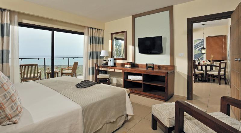 LAGEDas elegante Hotel befindet sich innerhalb des Biosphärenreservats Buenavista im Westen des Cayo Santa María, nur 10 Minuten vom Flughafen von Cayo Las Brujas entfernt. Der Flughafen von Havanna ist etwa 410 und der von Varadero etwa 350 Kilometer entfernt. | HOTELAls einziges der Solmelia-Hotels auf Kuba widmet sich dieses Hotel ausschließlich dem Royal Service-Bereich. Das ruhige Resort, das sich an Gäste ab 18 Jahren richtet, ist ideal für einen romantischen und erholsamen Urlaub zu zweit. Die elegante, zweistöckige Bungalowanlage erstreckt sich über 2500 m² und besticht durch modernes Design, klimatisierte Räume und offene Terrassen. Umgeben von unberührten Stränden und exklusiven Buchten bietet es ein äußerst privates und privilegiertes Ambiente.Mit drei Restaurants, darunter die Möglichkeit, das gastronomische Angebot aller Solmelia-Hotels auf Cayo Santa Maria zu nutzen, verwöhnt das Hotel seine Gäste kulinarisch. Eine weitläufige Swimmingpoolanlage mit zwei Becken, eine Poolbar, Strandbar und Pianobar ergänzen das Angebot. Sportbegeisterte können Tennis, Reiten, Mini-Golf, Aerobic, Basketball, Billard, Squash, Bogenschießen, Strandvolleyball und mehr ausüben. Das Wassersportzentrum des Hotels Sol Cayo Santa Maria (Windsurfen, Katamaran, Tauchen, Schnorcheln) steht ebenfalls zur Verfügung. Für Entspannung sorgt das exklusive Yhi-Spa, das gegen eine Gebühr genutzt werden kann. Das Hotel bietet zudem ein tägliches Unterhaltungsprogramm, einen Internet- und Lesesaal. | ZIMMERDas Hotel verfügt über insgesamt 105 Zimmer, alle sind geräumig und verfügen über Bad mit Jacuzzi, Dusche, WC, Föhn, Klimaanlage, Deckenventilator, Sat-TV, Telefon in Bad und Schlafzimmer, WLAN, Tee-/Kaffeekochmöglichkeit, Minibar mit täglicher Nachfüllung, Safe, 24h-Zimmerservice, Bügeleisen und -brett sowie eine Terrasse mit Außendusche.Junior Suite The Level Diese Zimmer bieten 62 m² und befinden sich in den oberen oder unteren Etagen der zweistöckigen Bungalows mit Terrasse und Blick auf den Garten oder den Pool. Junior Suite The Level Meerblick Diese Zimmer bieten 62 m² und liegen im Erdgeschoss der Bungalows mit Terrasse und Meerblick. Romance Junior Suite The Level mit Meerblick Diese Zimmer bieten 62 m² und befinden sich in der unteren Etage der Bungalows mit Terrasse und Meerblick. |
