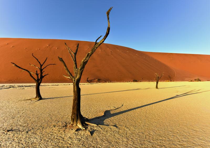 Vor ungefähr 5 Millionen Jahren bildete sich rund um das Sossusvlei eine ganz einzigartige Landschaft, geprägt von erstaunlichen Lehmböden, üppigen Bäumen und kunstvoll geformten Dünen. Diese Wunder der Natur haben sich im Laufe der Zeit perfekt den rauesten Bedingungen der Wüste angepasst und bieten Ihnen somit eine unvergleichliche Kulisse, die Ihren Atem rauben wird.