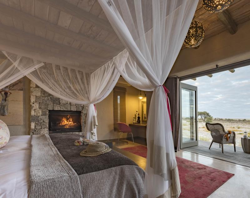 LAGEOnguma The Fort liegt strategisch günstig im 34.000 Hektar großen, privaten Onguma Naturreservat, direkt an dessen Westseite. Die erhöhte Position bietet einen weiten Panoramablick über die Fischer-Pfanne bis in die berühmte Etosha-Pfanne hinein. Durch die direkte Nähe zur Ostgrenze des Etosha-Nationalparks ist die Lodge ein idealer Ausgangspunkt für Wildbeobachtungen, die oft schon direkt vom Zimmer oder dem Wasserloch vor dem Fort aus beginnen. | HOTELThe Fort ist ein architektonisches Meisterwerk, das in Namibia seinesgleichen sucht: Der massive Bau erinnert an eine alte Festung mit hohen Mauern und einem Aussichtsturm, dessen Design auf einzigartige Weise klassisches afrikanisches Safari-Gefühl mit eleganten marokkanischen und indischen Einflüssen verbindet. Das Hauptgebäude besticht durch schöne Steinreliefs und eine imposante Silhouette, die den perfekten Kontrast zur rauen Schönheit des Busches bildet. Intimität und Luxus stehen im Vordergrund, während das Wasserloch vor der Terrasse ständige Tieraktivität garantiert. | ZIMMERGäste werden in nur 11 luxuriösen Busch-Suiten sowie einer exklusiven Honeymoon-Suite untergebracht. Die Suiten sind etwa 50 Meter vom Hauptgebäude entfernt angeordnet, um höchste Privatsphäre zu gewährleisten. Jede Suite verfügt über einen offenen Kamin, Klimaanlage und ein großzügiges Bad mit Innen- und Außendusche. Große Türen führen auf die private Terrasse mit Stühlen und Sonnenliegen, von der aus Sie das nahe Wasserloch überblicken. Die exklusivste Option ist die Sultan Suite im Turm des Hauptgebäudes, ausgestattet mit einem großzügigen Loungebereich, Badewanne und privater Aussichtsterrasse. |