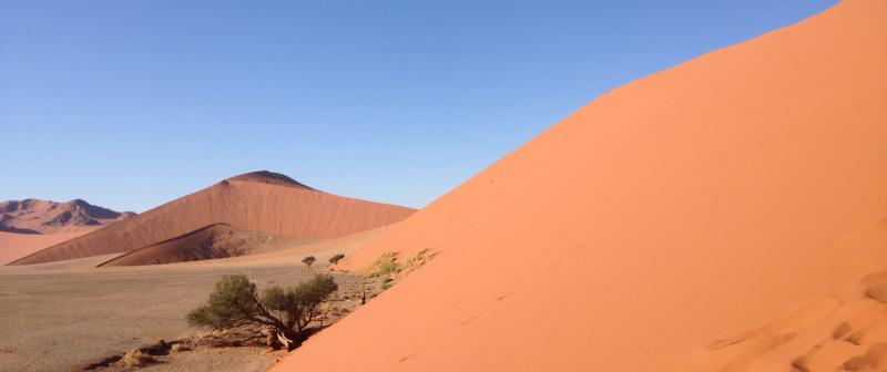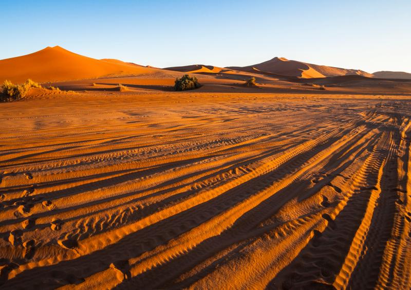 | Zeitig am Morgen besuchen Sie im Sossusvlei die höchsten Sanddünen der Welt und unternehmen eine Wanderung in das Dead Vlei und durch den Sesriem Canyon. |