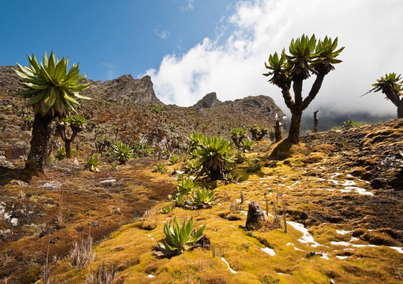 Die Reise führt Sie weiter in nördlicher Richtung zum majestätischen Ruwenzori-Gebirge, auch bekannt als die Mountains of the Moon. Staunen Sie über die erhabenen Gipfel, die sich über 5000 Meter über dem Meeresspiegel erheben und mit schneebedeckten Gipfeln glänzen. Diese Aussicht ist einfach atemberaubend und wird Ihre Seele berühren.