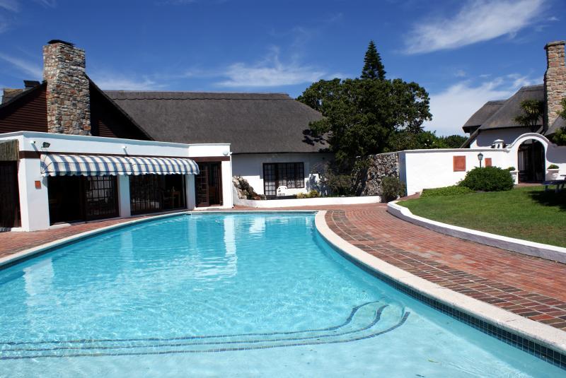 LAGEDie Whale Rock Luxury Lodge befindet sich in ausgezeichneter Lage unweit des Marine Drives und des Zentrums von Hermanus. | HOTELDie Whale Rock Luxury Lodge, die umgeben von Bergen und Stränden ist, bietet eine entspannte Ferienatmosphäre in Hermanus. Mit ihrer strahlend weißen Fassade, dem Strohdach und dem gepflegten Garten mit einer großen Rasenfläche zählt die Lodge zu den schönsten Unterkünften in Hermanus. Eine elegante Lounge, eine kleine Bücherei mit Kamin, ein beheiztes Schwimmbad mit Sonnenliegen, eine Honesty Bar und ein Frühstücksraum mit Kamin komplettieren die Wohlfühlatmosphäre. Die herzlichen Gastgeber und ihre Haustiere freuen sich auf Ihren Besuch. Mit ein bisschen Glück können Sie von Juli bis November von den Klippenwegen aus Wale beobachten. | ZIMMERDie 17 Zimmer unterschiedlicher Kategorien verfügen über ein Badezimmer mit separatem Bad und Dusche, Fön, Flachbildschirm, Sat-TV, WLAN, Safe und Minibar. |
