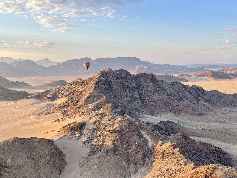 • Heißluftballonfahrten über die endlosen Dünen der Namib