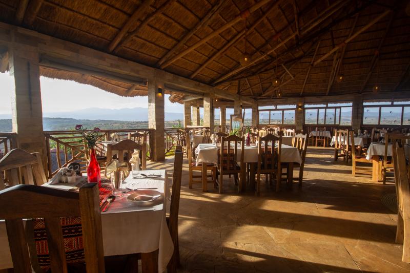 Das Restaurant setzt auf eine Mischung aus internationaler Küche und lokalen Einflüssen. Viele der verwendeten Zutaten stammen aus der unmittelbaren Umgebung, was die Frische der Speisen garantiert. Ob ein herzhaftes Frühstück vor dem Aufbruch zur Safari oder ein mehrgängiges Abendessen am Kamin – die kulinarische Versorgung lässt keine Wünsche offen.