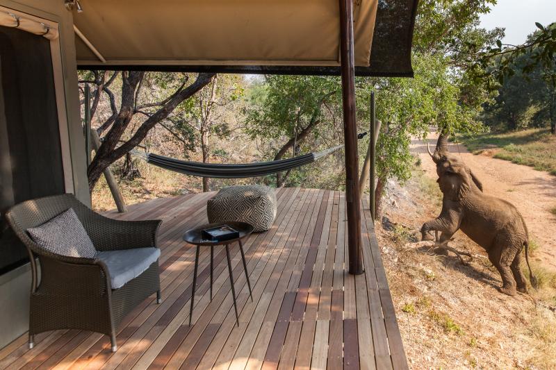 LAGEDiese exklusive Unterkunft liegt im Greater Makalali Private Game Reserve. Die Gäste erwartet ein wunderschönes Camp, das enimalige Safarierlebnisse mit dem Stil einer traditionellen Zeltunterkunft hegt und pflegt. Der Flughafen Hoedspruit liegt etwa 40 Kilometer, Johannesburg etwa 6 Fahrstunden entfernt. | HOTELInmitten der wenig berührten Wildnis verwöhnt das Garonga Safari Camp mit typischer afrikanischer Bauweise und warmen Farbtönen. Es strahlt Eleganz und eine zeitlos moderne Ästhetik aus. Ein weiterer Trumpf ist das sehr persönliche Service, sodass man sich als Gast nicht nur willkommen sondern wie zu Hause fühlt. Ein ausgezeichnetes Restaurant mit gut sortiertem Weinkeller sorgt für kulinarische Genüsse. Zu den weiteren Einrichtungen zählen eine Bar, ein Boma, eine Lounge mit Honesty Bar und ein Souvenirshop. Für Entspannung zwischen den Safaris sorgen der Pool und Massagen sowie verschiedene Aromatherapien. Kostenloses WLAN im Bereich der Rezeption. Die Pirschfahrten, bei denen Sie mit ein bisschen Glück alle Vertreter der berühmten "Big 5" vor die Kameralinse bekommen, werden morgens mit einem Frühstück inmitten der Wildnis und abends mit einem traditionellen Sundowner verfeinert. Zudem kann man Buschwanderungen mit den bestens ausgebildeten Rangern unternehmen. Genießen Sie doch ein romantisches Bad unterm Sternenzelt oder nächtigen Sie am Sleep Deck unterm freien Himmel - auch dies ist im Garonga möglich. | ZIMMERDie lediglich 6 luxuriösen Zeltunterkünfte sind geräumig ausgestattet und verwöhnen mit einem grandiosen Blick auf ein ausgetrocknetes Flussbett. Sie verfügen über ein Badezimmer mit Innen- und Außendusche, Deckenventilator, Moskitonetz und Hängematte auf dem privaten Holzdeck. |