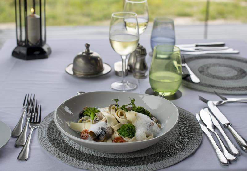 Die Küche im Onguma The Fort ist von höchster Qualität und kann im Hauptrestaurant oder auf der Terrasse mit Blick auf das belebte Wasserloch genossen werden. Ein besonderes Highlight ist die Möglichkeit, ein privates Bush Dinner unter dem afrikanischen Sternenhimmel zu buchen, um die exquisite Küche in einer noch intimeren Atmosphäre zu erleben.