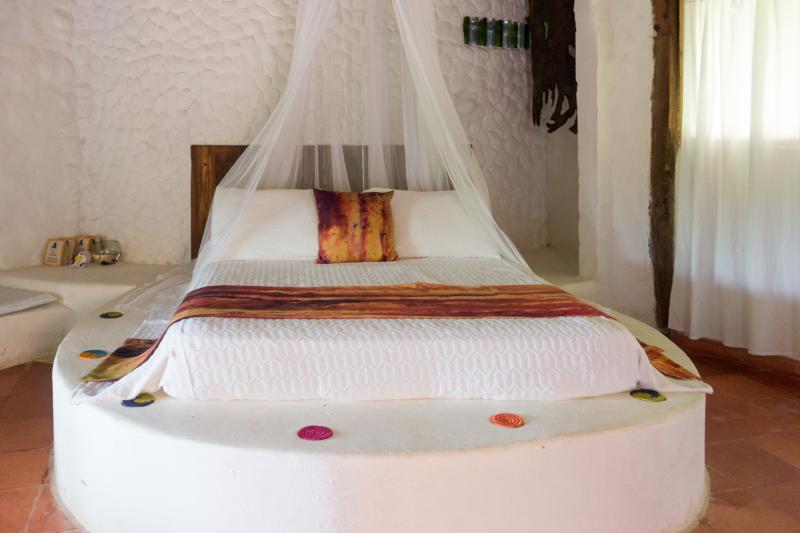 LAGEDas Hotel Playa la Roca liegt idyllisch zwischen den majestätischen Ausläufern der Sierra Nevada de Santa Marta und dem türkisblauen karibischen Meer, direkt am Strand Playa la Roca. Nur 2 km entfernt befindet sich das charmante Dorf Palomino, wo Gäste lokale Kultur und authentische Gastfreundschaft erleben können, während sie in unberührter Natur entspannen. | HOTELEin Leben im Einklang mit der Natur und zusammen mit den indigenen Kommunen der Sierra Nevada Region von Santa Marta ist das, was man den Gästen im Ökohotel Playa la Roca näher bringen möchte. Dank der vielen Erfahrungen der Mitarbeiter, wird hier ein ganz spezieller Ort angeboten, an dem der Respekt gegenüber der Natur und den indigenen Kulturen zusammentreffen. Ein Restaurant mit frischen Produkten aus der Region, eine Bar und ein Pool für alle Gäste runden Ihren Aufenthalt inmitten der Natur ab. | ZIMMERDie 14 Standardzimmer des Playa la Roca sind in traditionell erbauten Hütten untergebracht und verfügen über ein Doppelbett und mehrere Einzelbetten und einige von Ihnen über einen Blick auf die Karibik, Ventilator, Terrasse oder Balkon. Es gibt kein Warmwasser auf den Zimmern! |