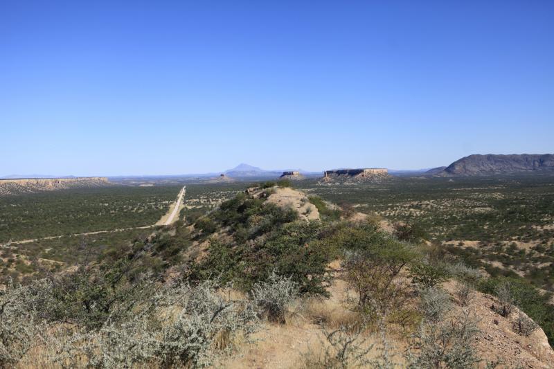 | Die Fahrt führt sie weiter in das Landesinnere zur Damaraland Region. Die Schotterstraßen ziehen sich durch ausgetrocknete Flussbetten, vorbei an massiven Bergketten. Ihre Unterkunft liegt auf dem Gipfel eines Berges und bietet eindrucksvolle Aussichten auf die umliegende Landschaft. Verbringen Sie den Nachmittag damit, diese atemberaubende Kulisse auf sich wirken zu lassen, oder entspannen Sie am Pool des Hotels.