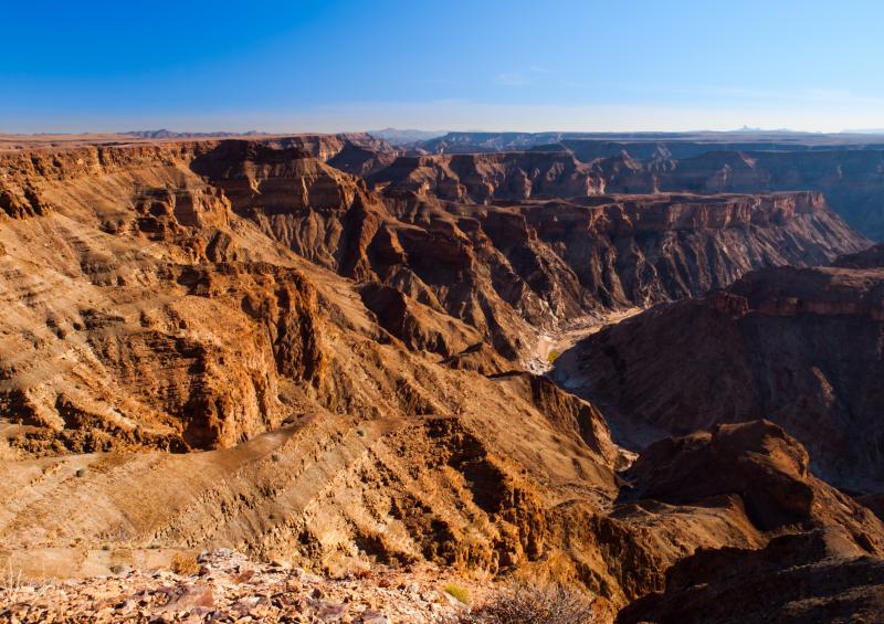 | Ihr heutiges Ziel ist der Fish River Canyon, Afrikas tiefste Schlucht. Hierfür fahren Sie Richtung Westen und überqueren die Grenze nach Namibia. Den Canyon besichtigen Sie entweder heute am Nachmittag oder am folgenden Morgen.